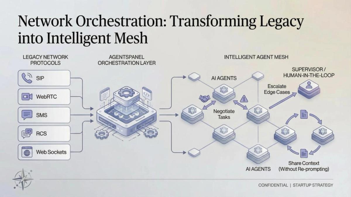 At the center of this transformation is agentic orchestration over networks: a new operating model where intelligent agents are deployed, coordinated, and evolved across channels with the same ease we provision phone numbers, APIs, or cloud services.